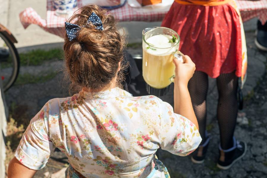 Rebecca Lessard refilling the ginger juice. photo by Toby Andris Cayouette