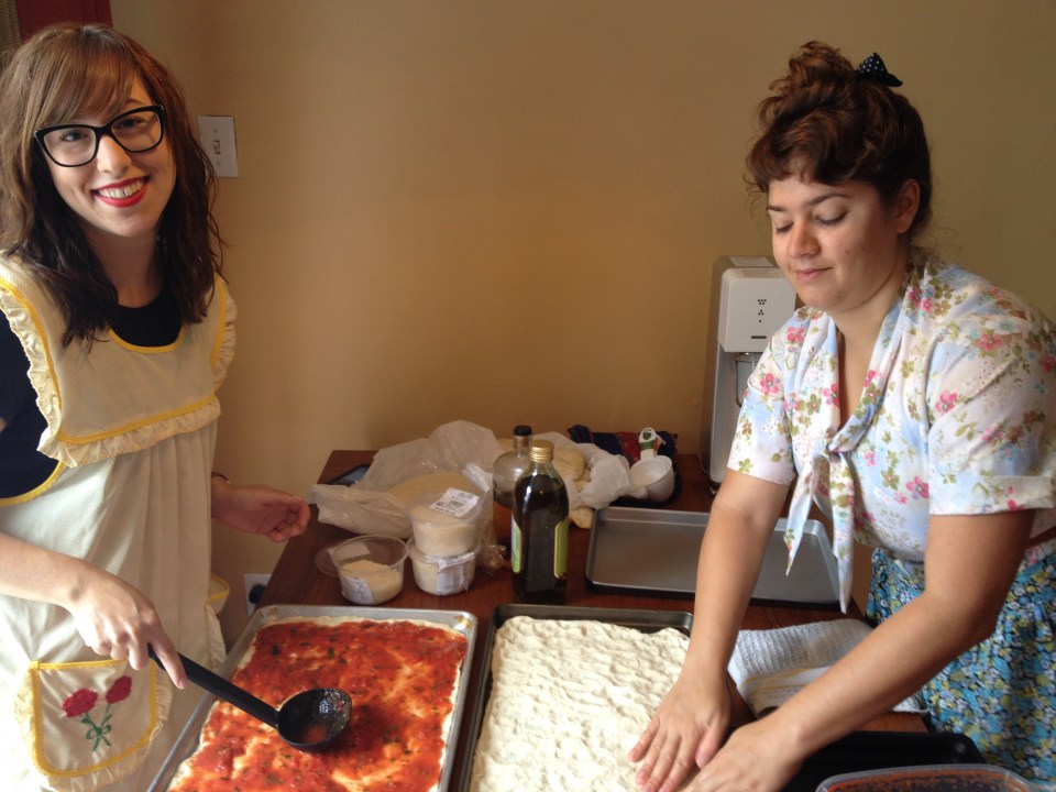 Kat and Rebecca from Roots & Recipes prepare 2 of many pizza napoletanas. photo by Roots & Recipes
