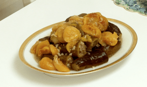 14. When it is ready, remove plate, set zucchinis on a serving platter, and cover with remaining apricots and then the sauce. Serve hot!